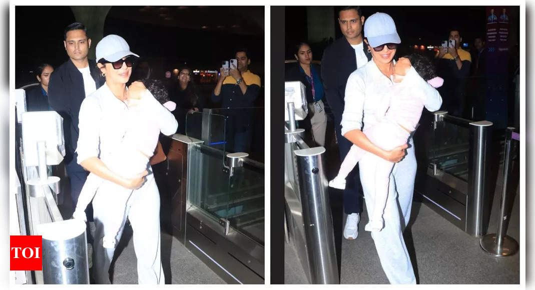 Actress Priyanka Chopra was spotted at the airport on Wednesday morning, cradling her sleeping daughter Malti Marie as they caught their flight out of Mumbai city. The actress, who had