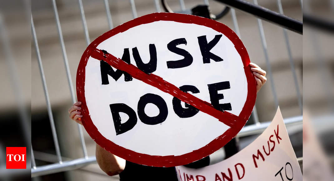 A demonstrator holds a sign during a rally to protest President Donald Trump and Elon Musk policies. (AP) A wave of resignations has hit Elon Musk’s Department of Government Efficiency