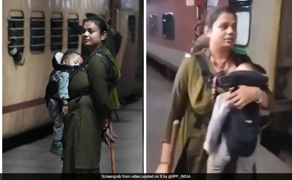 A Railway Protection Special Force (RPSF) constable has become a viral sensation after a video surfaced online showing her working at New Delhi Railway Station while carrying her infant. ,