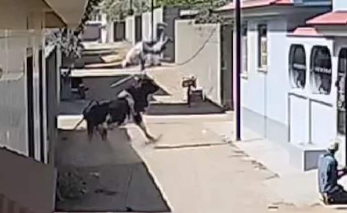 The man suffered serious injuries. In a shocking incident caught on CCTV camera, an elderly man was attacked by a stray bull and thrown nearly seven feet in the air