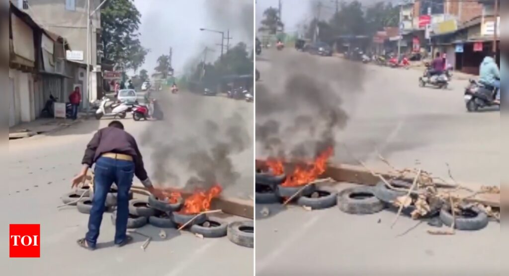 NEW DELHI: Imphal valley in Manipur once again became the epicentre of protests as demonstrators blocked roads and set tires on fire, retaliating to the arrest of several village volunteers in Kakching district.