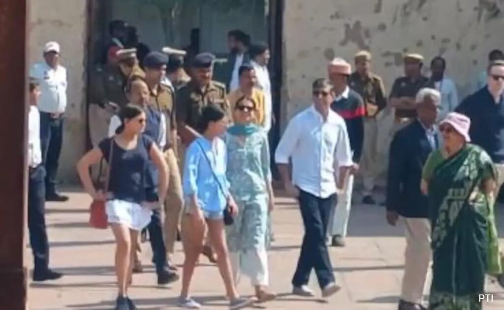 Fatehpur Sikri’s Conservation Assistant (Archaeology Department), Dilip Singh, said, “The whole family first visited the Diwan-e-Aam. After seeing Jodhabai’s fort, they toured the monument and also went to the dargah of Salim Chishti, where they offered a chaadar. Rishi Sunak also tied a thread at the dargah.” On Saturday, they visited the Taj Mahal and spent around one and a half hours at the iconic monument.